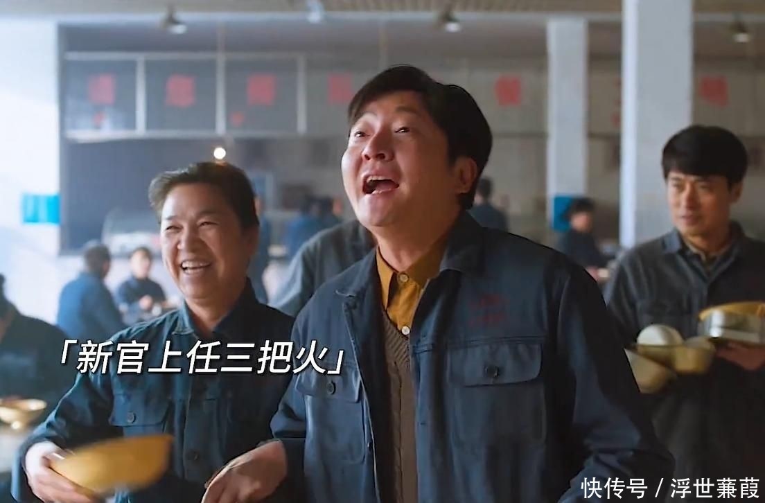 郭京飞饰演的崔国明,刚刚接到大型国企的裁人示知,回家途中买了一袋炒瓜子,独自蹲在厂门口沉默哭了三分钟。